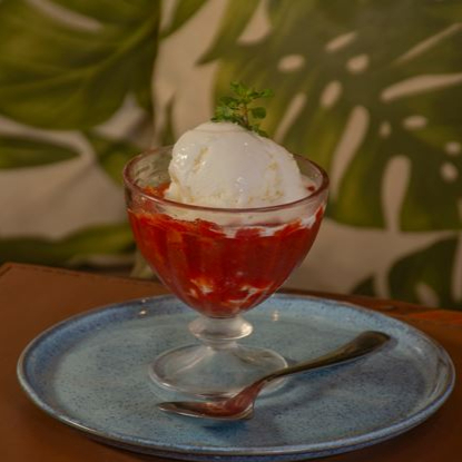 Sorvete de Queijo é uma irresistível sobremesa gelada feita com base cremosa de queijo, acompanhada de calda de Goiabada cremosa.