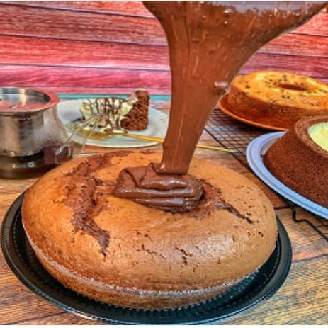 Delicioso bolo caseiro de 20 cm . Massa de leite batida com granulado de chocolate bem leve e fofinha , bastante cobertura e granulado de chocolate ( opcionais pagos ) . Serve bem 8 pessoas. Se você escolher o bolo sem complemento e sem cobertura , o bolo irá sem a calda e sem o granulado .