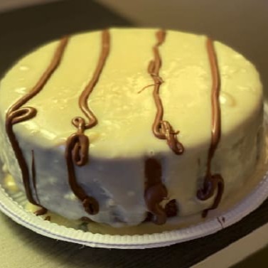 Delicioso bolo caseiro de 20 cm . Massa de leite , bem leve e fofinha . Bastante cobertura e granulado ( opcionais pagos ) . Serve bem 8 pessoas.