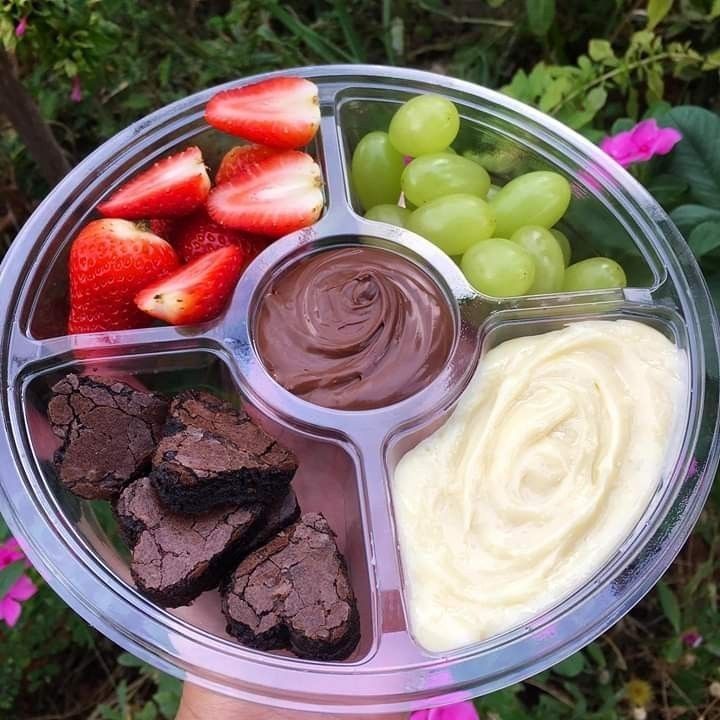 Sabe aquele desejo de um doce caprichado que não passa? Nossa Petisqueira de Fondue chegou para salvar o seu dia! Uma combinação irresistível de texturas e sabores, selecionados para proporcionar uma experiência gourmet onde você estiver. Brownies Artesanais: Macios por dentro e com aquela casquinha crocante (feitos com muito amor!). Frutas Selecionadas: Morangos frescos e suculentos + Uvas verdes sem semente, higienizadas e docinhas. Os Favoritos: Uma dose generosa de Nutella e nosso exclusivo creme de Ninho aveludado. Dica: Perfeito para um encontro romântico, um filme em casa ou para presentear quem você ama! ✨