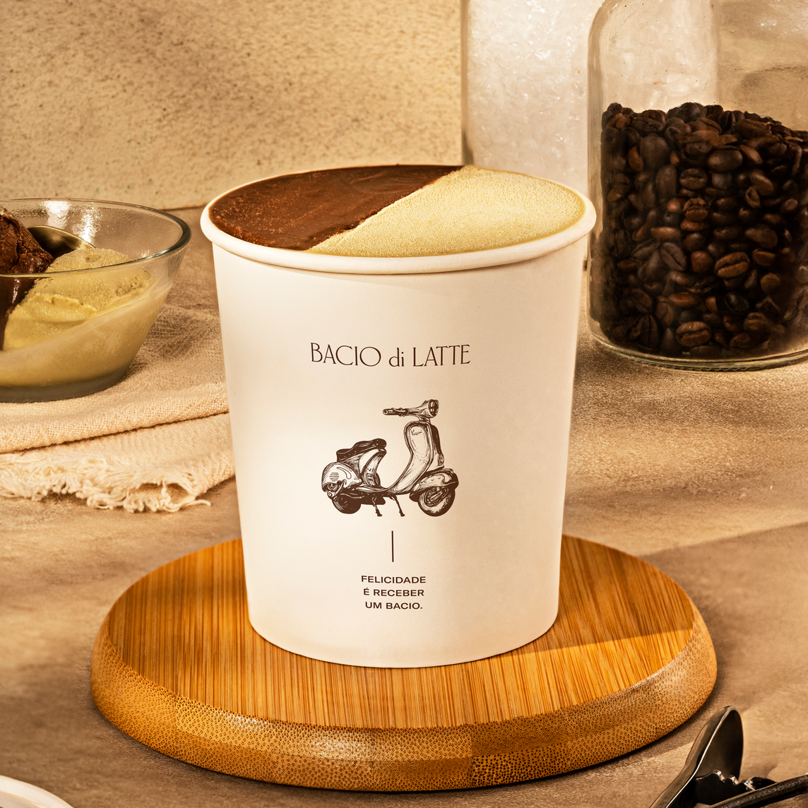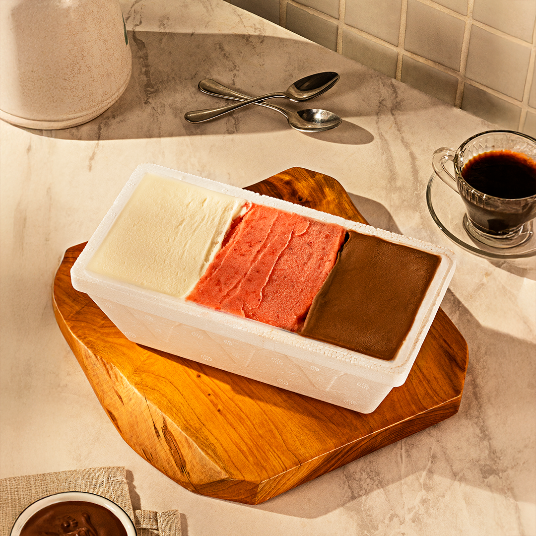 Escolha até 3 sabores de gelato/sorvete. Tamanho ideal para compartilha com até 4 pessoas.