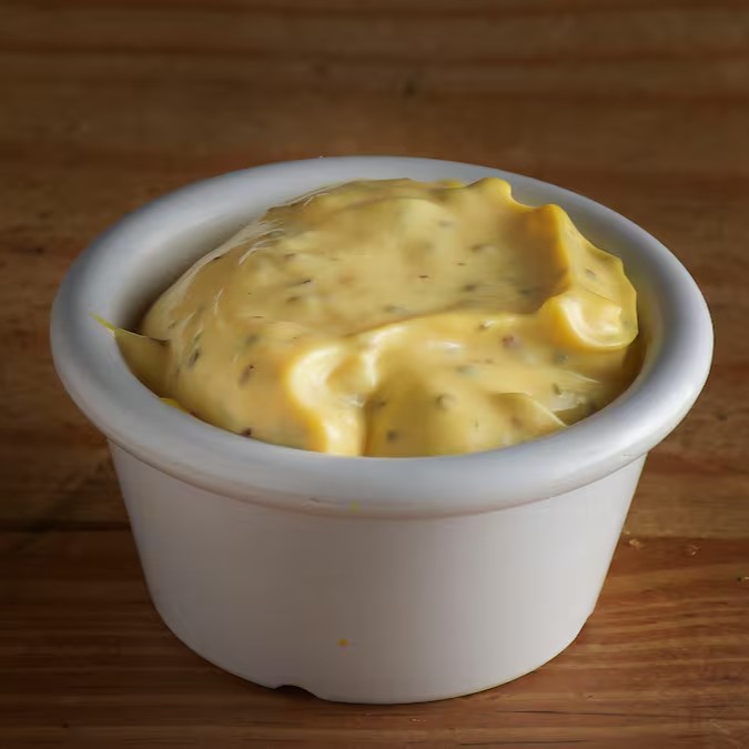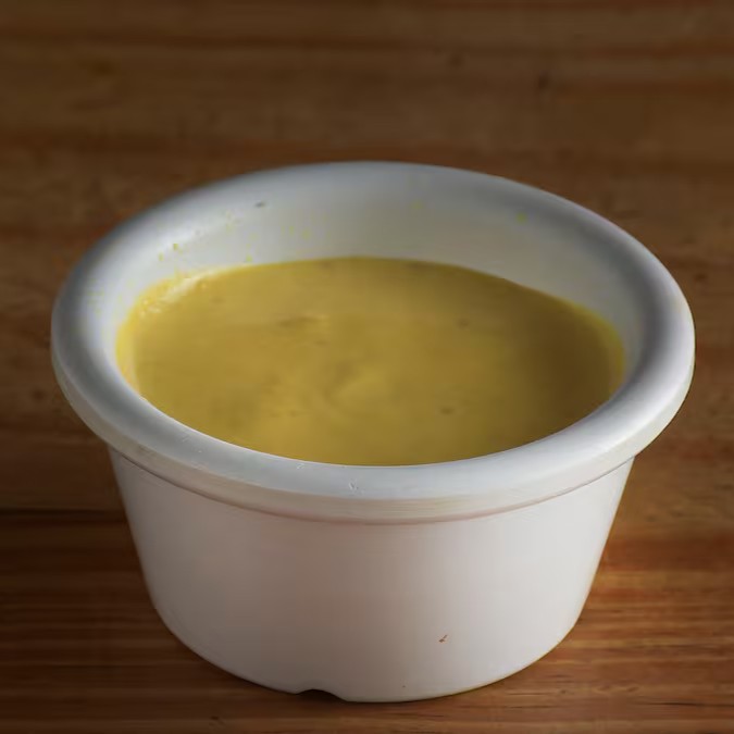 Um condimento saboroso feito com mostarda, vinagre, azeite, sal e outros temperos. Contém 50g e vai em embalagem separada para você.