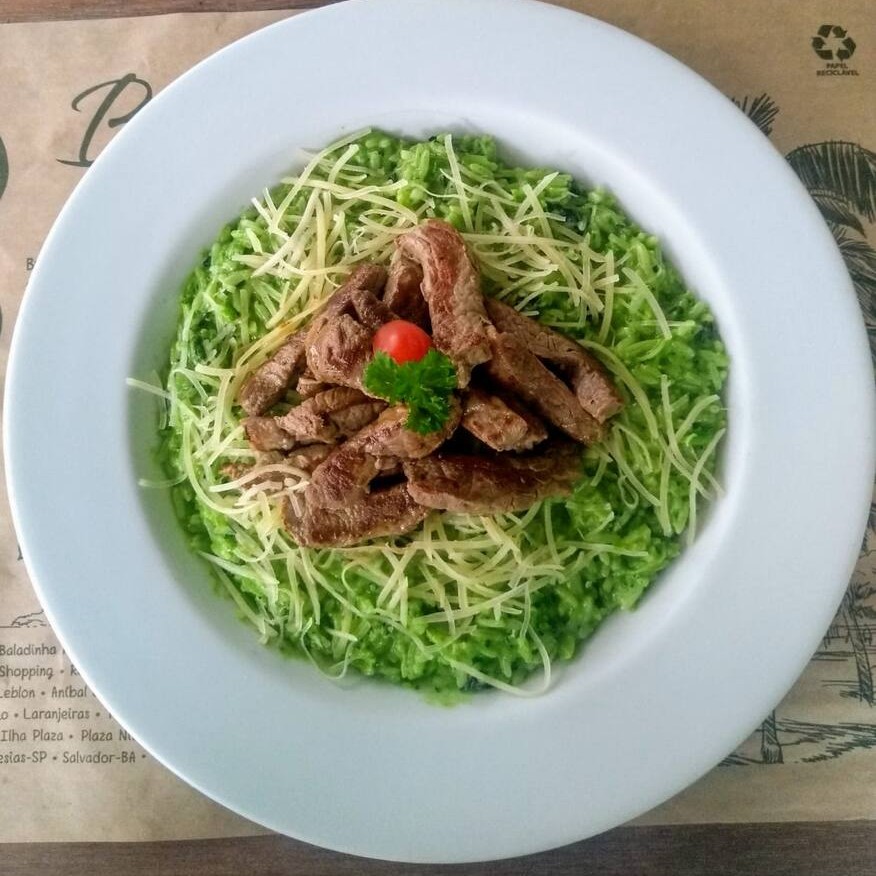Baby Beef servido com Risotinho de Brócolis e Grana Padano.