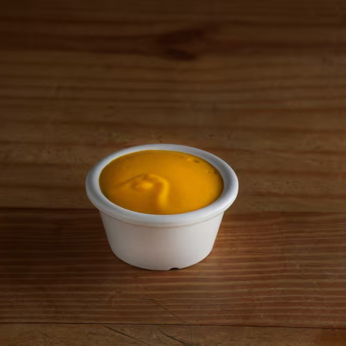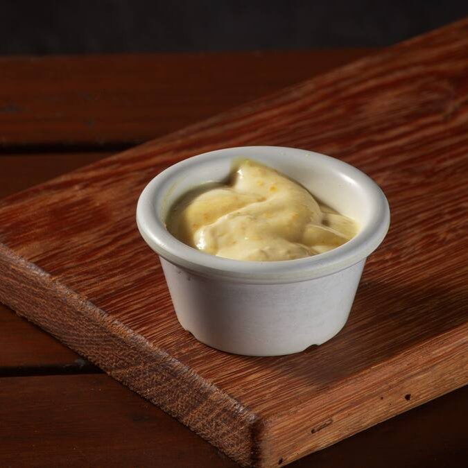 Um condimento saboroso feito com mostarda, vinagre, azeite, sal e outros temperos. Vai em embalagem separada para você.