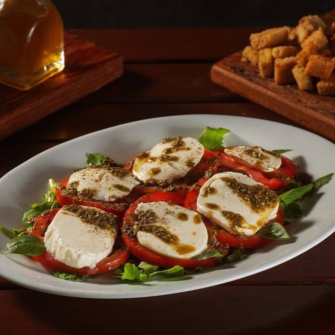 Uma salada que celebra os sabores da Itália. Com Tomate fresco, Mussarela de Búfala, Orégano, Rúcula e Manjericão, harmonizados com o saboroso Molho Pesto.