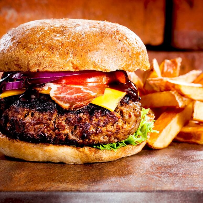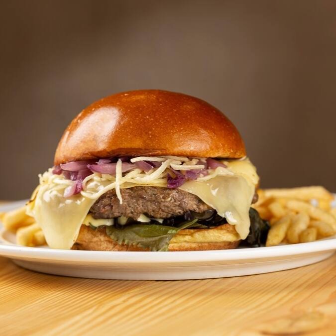 Um blend especial de carne, coberto com queijo derretido, fatias generosas de bacon crocante e coroado com um ovo frito suculento. Servido aberto para apreciar cada camada de sabor.