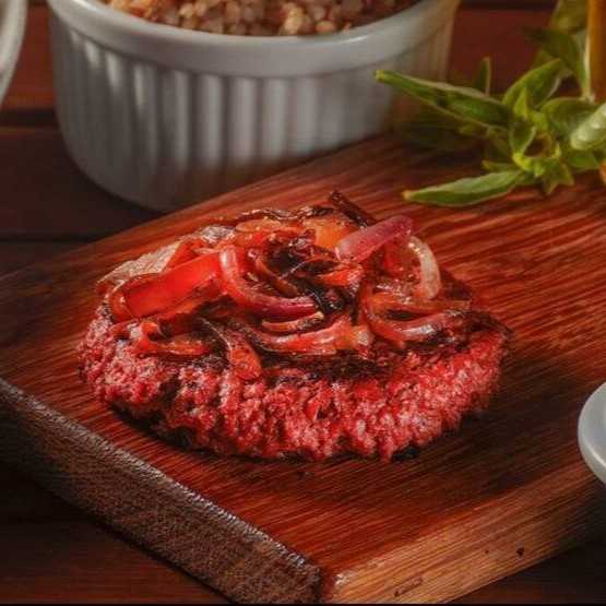 Experimente nosso Burguer Vegano com Proteína de Ervilha, Soja e Grão de Bico, Beterraba, Condimentos e Especiarias. Acompanha Arroz, Fritas, Farofa ou Salada