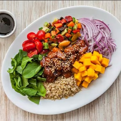 Aproveite o verão com a refrescância do nosso Poke Havaiano e uma lata de refrigerante à sua escolha, com um desconto de 20% Off. Não perca esta oportunidade! Salada Poke Havaiana com quinoa em grãos, salmão cru ao molho oriental, gergelim torrado, legumes assados, manga, tomate cereja e cebola roxa