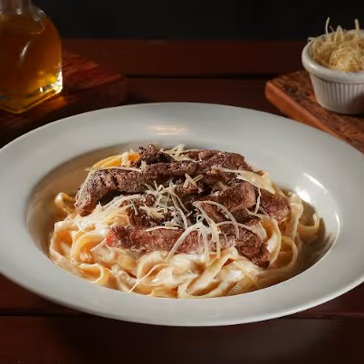 Delicioso e Super Macio Baby Beef em Tiras acompanhado de Fettuccine Alfredo.