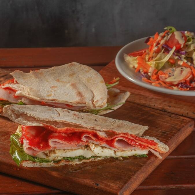 Descubra a combinação Perfeita e Saudável: Peito de Peru, Mussarela de Búfala, Tomate fresco, Rúcula e toque de Molho Pesto Artesanal.