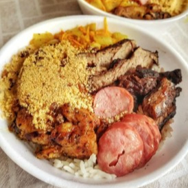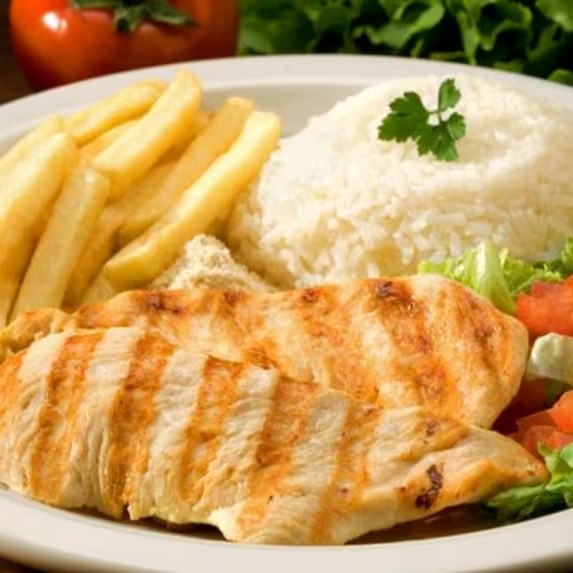 Acompanhado de arroz branco soltinho , feijão com tempero de vovó e farofa crocante + 1 Guarnição da sua escolha