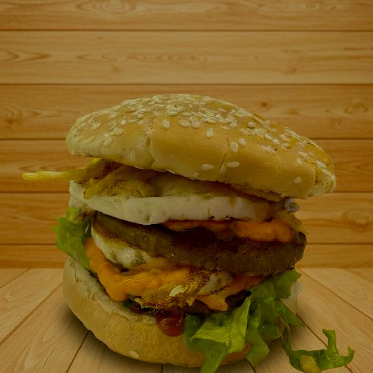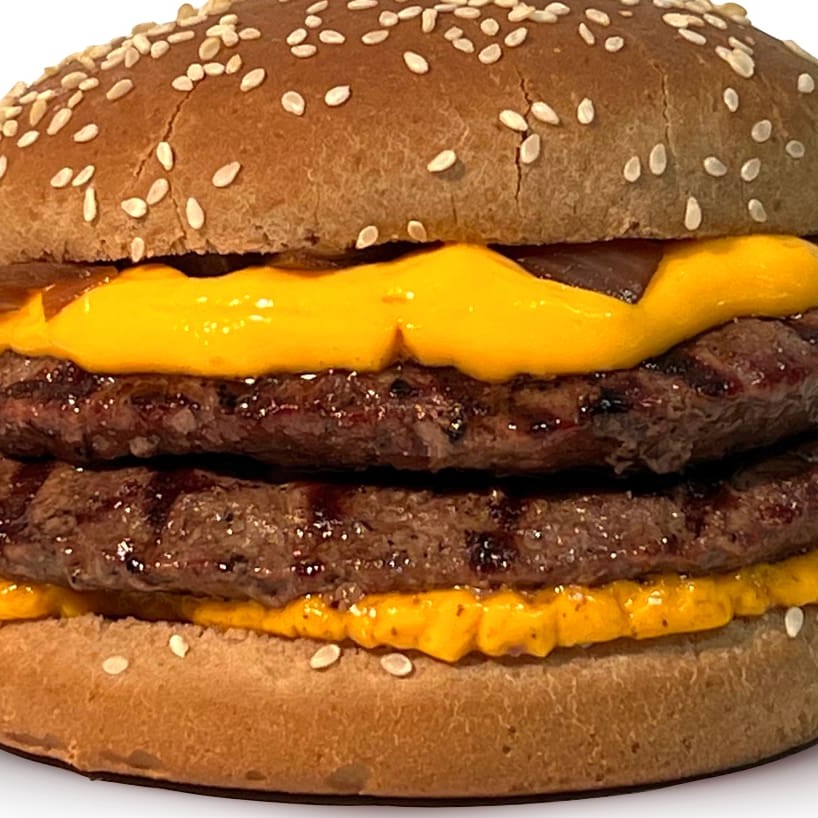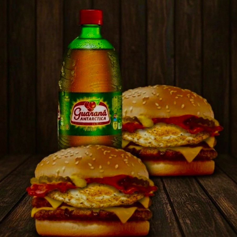 2 Hamburguer - Pao, Carne, Ovo, Cheddar, Salada , Bacon Calabresa, requeijão, maionese e alho e batata palha