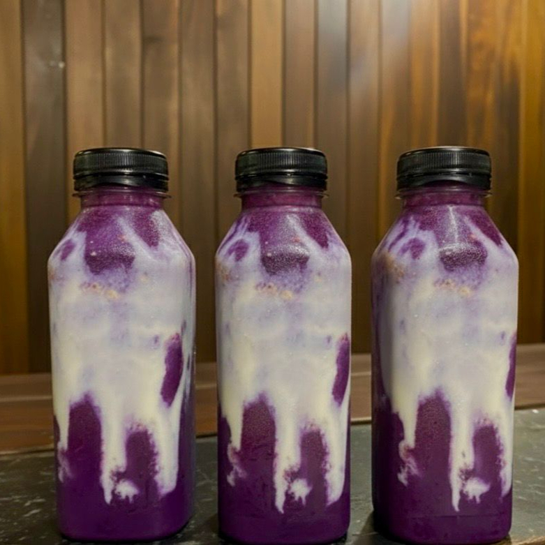 Açaí batido na garrafa com leite condensado