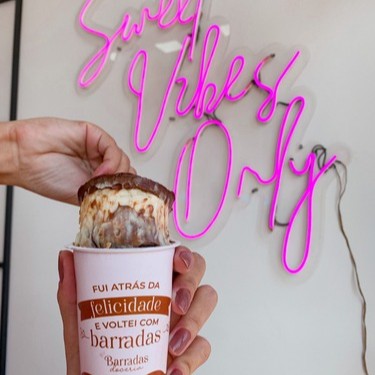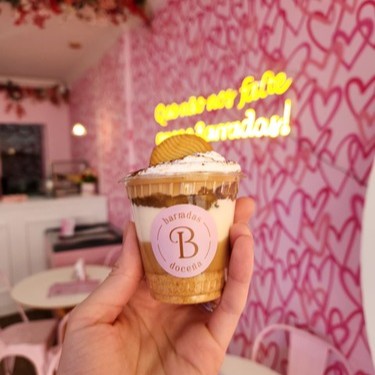Acompanha: 1 doce (Copo Barradas, fatia cookie ou fatia morangoffe) + 1 salgado (folhado, empadão de frango (outros sabores com acréscimo de 2,00), porção de pão de queijo tradicional (acréscimo de 2,00 para recheado) ou misto quente + bebida.