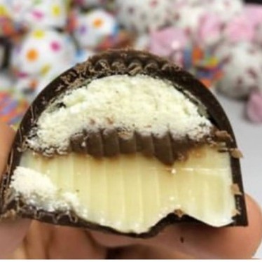 casca de chocolate meio amargo recheado com brigadeiro de leite ninho e leite ninho em pó e nutella