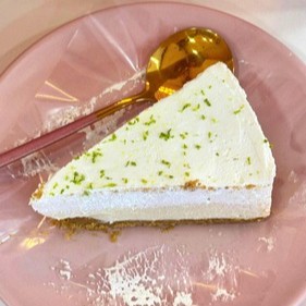 Base de biscoito, mousse de limão, chantininho, finalizado com raspas de limão.