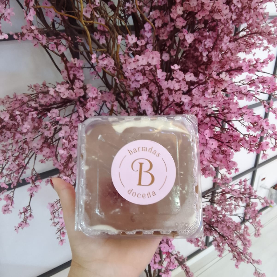 Massa de cacau molhadinha recheada com creme de coco e brigadeiro. 200ml.