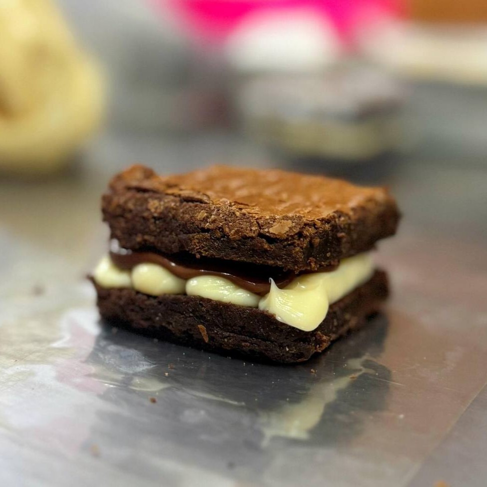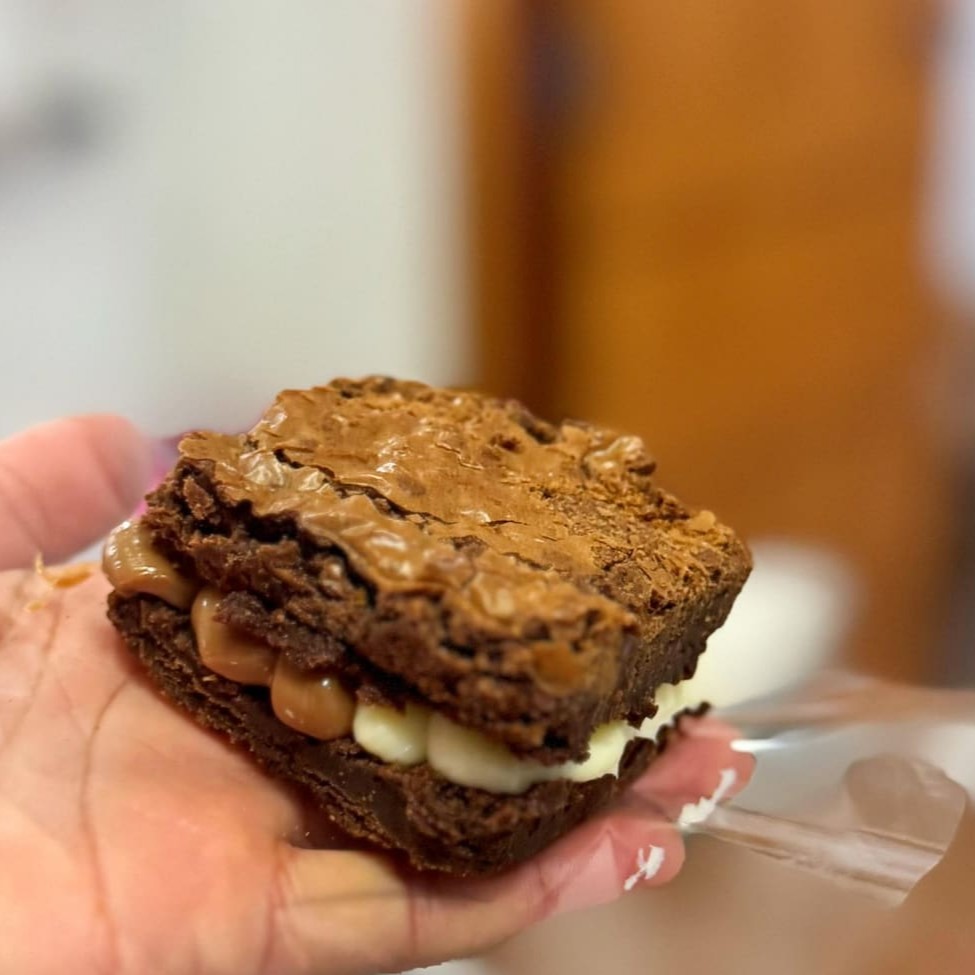 Massa de brownie, recheada com delicioso brigadeiro de leite Ninho e Nutella.