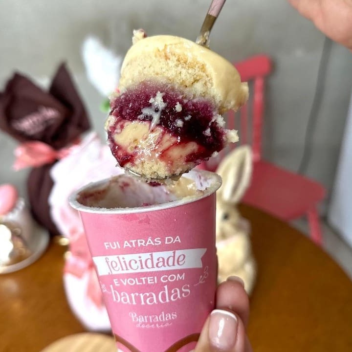 Acompanha: 1 doce (Copo Barradas, fatia de limão, fatia banoffe, bombom no pote ou pavê) + 1 salgado (folhado, empadão de frango (outros sabores com acréscimo de 2,00), porção de pão de queijo tradicional (acréscimo de 2,00 para recheado) ou misto quente + bebida.