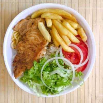 ARROZ FEIJAO MACARRAO FAROFA E BATATA FRITAS