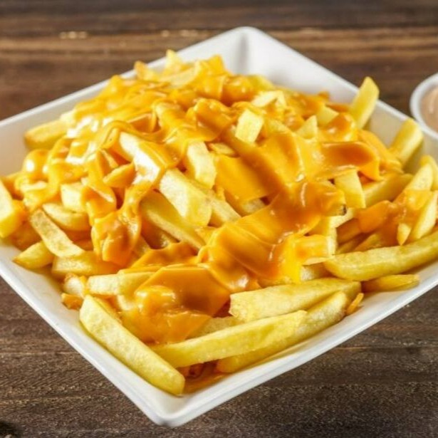 Batata frita e Cheddar.