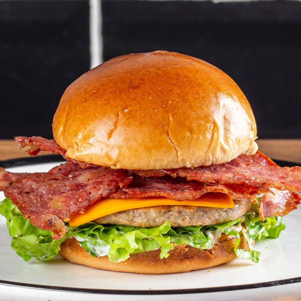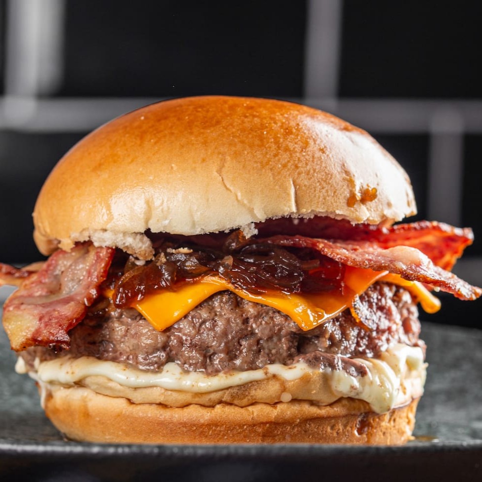 Delicie-se com nosso incrível hambúrguer: pão macio de brioche, suculenta carne, queijo, irresistível bacon crocante, maionese especial caseira e fresca salada. Uma explosão de sabores em cada mordida. Vem provar!