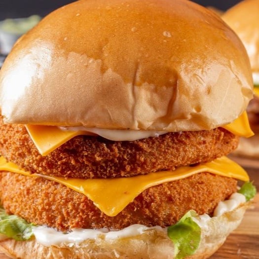 Delicioso sanduíche feito com pão brioche artesanal, dois generosos frangos empanados e crocantes, irresistível queijo cheddar derretido, refrescante salada e uma saborosa maionese caseira. Uma experiência única e apaixonante para os amantes de sanduíches.