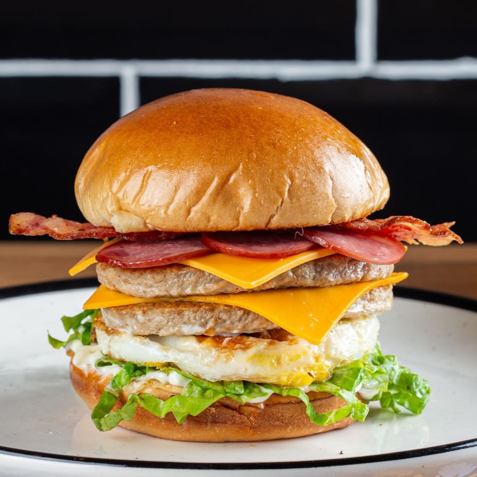 Delicioso Burguer servido no Pão de Brioche, 2 suculentas carnes, 2 queijos derretidos, ovo, bacon crocante, calabresa, nossa maionese especial e fresca salada. Experimente agora!