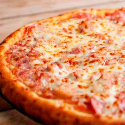 Massa fresca, molho de tomate, mussarela, bacon e orégano.