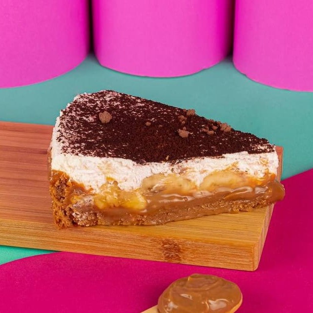 Camadas de creme de confeiteiro de baunilha e chocolate, intercalado com biscoito maisena e coberto com ganache de chocolate meio amargo.