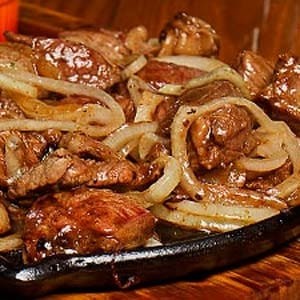 pequenos fatias de cotra filé macio e saborosos, grelhado na chapa com cebola.
