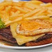 Acompanha arroz, fritas, farofa de ovo, vinagrete (feijão, a gosto).