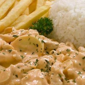 deliciosos filézinhos de carne, em molho tipico com champignon.