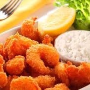 camarão empanado frito no óleo vegetal, com molho tátaro.