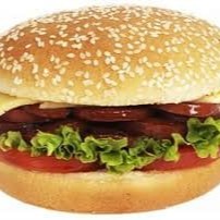 carne de hambúrguer, linguiça, bacon, queijo, presunto, salada,e pão