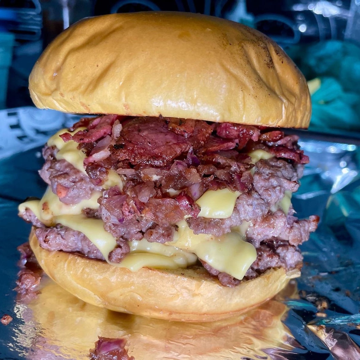 Pão brioche, 2 carnes de picanha , 2 queijos prato, bacon fatiado, batata palha, escolha seu delicioso molho.