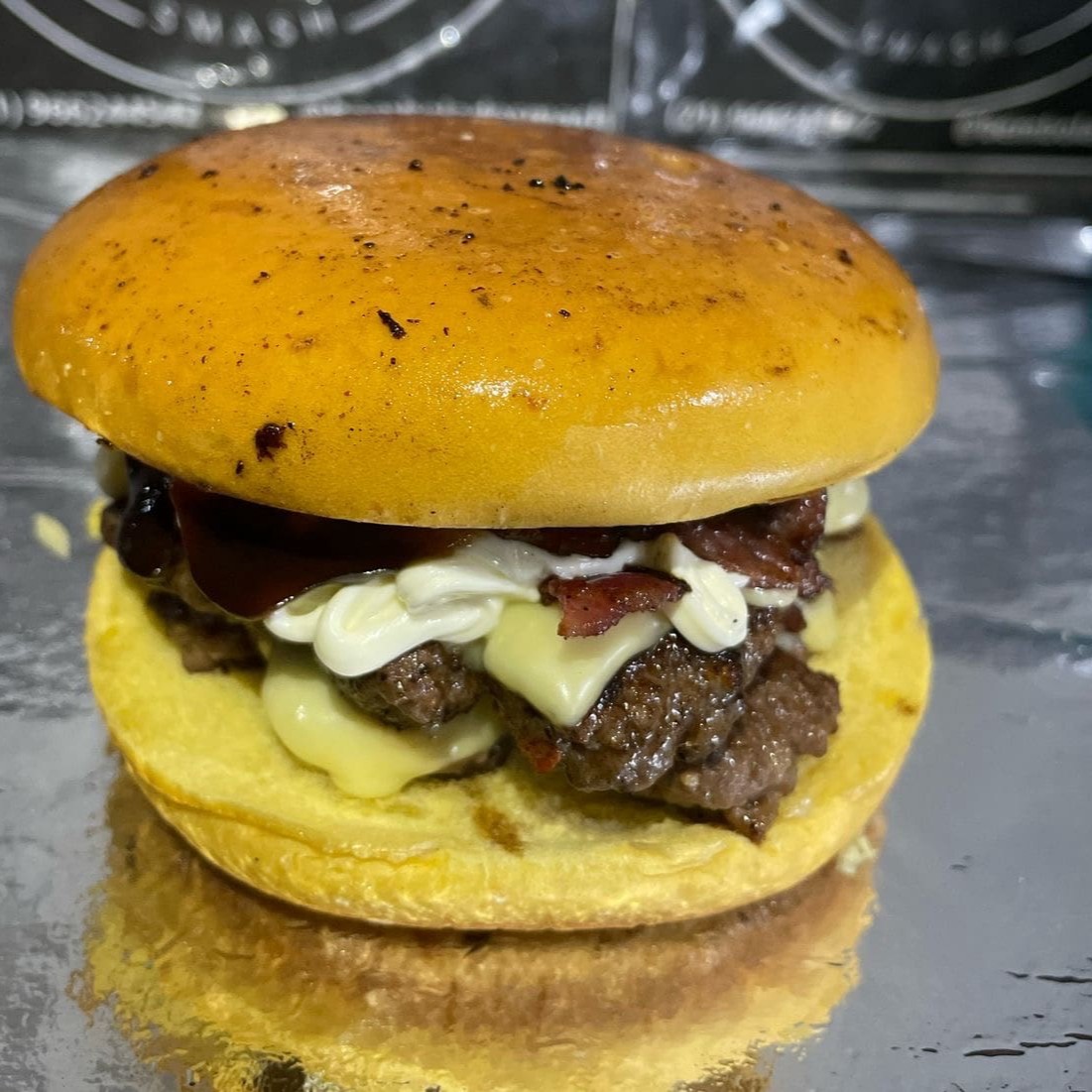 Pão, 2 carnes, 2 queijos prato, bacon fatiado, escolha seu delicioso molho.