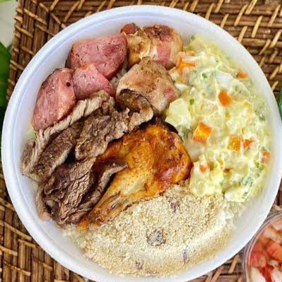 Arroz, Feijão, Churrasco Misto, Maionese e Farofa