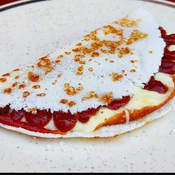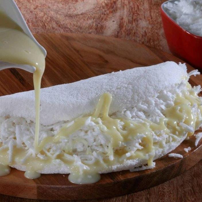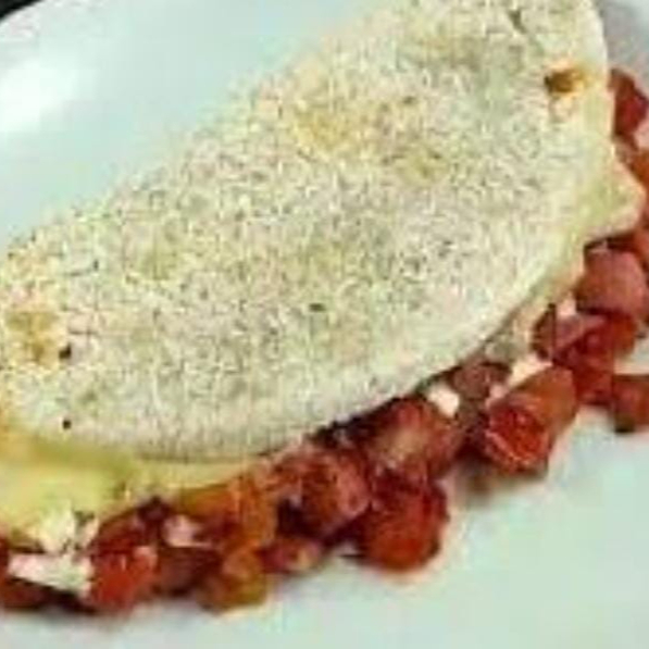 Clássica combinação de queijo derretido e presunto suculento dentro de uma tapioca macia.