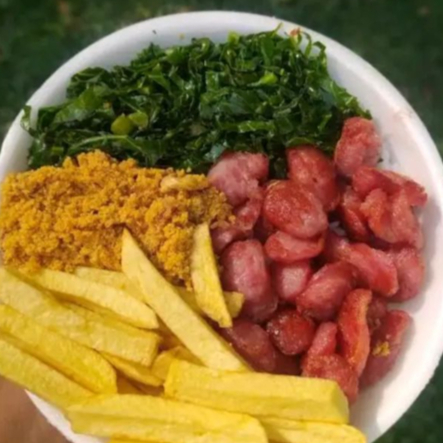 Arroz, Feijão, Linguiça Mineira, Couve, Batata Frita e Farofa