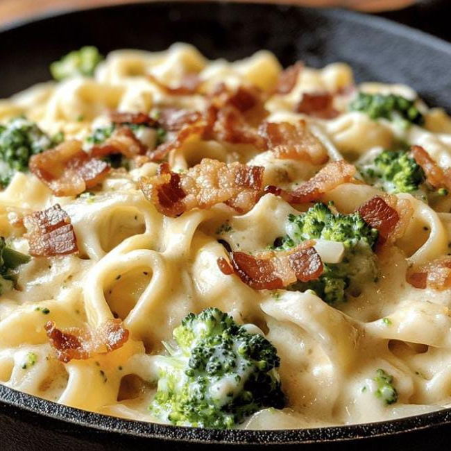 Macarrão Talharim Com Bacon Queijo E Brócolis