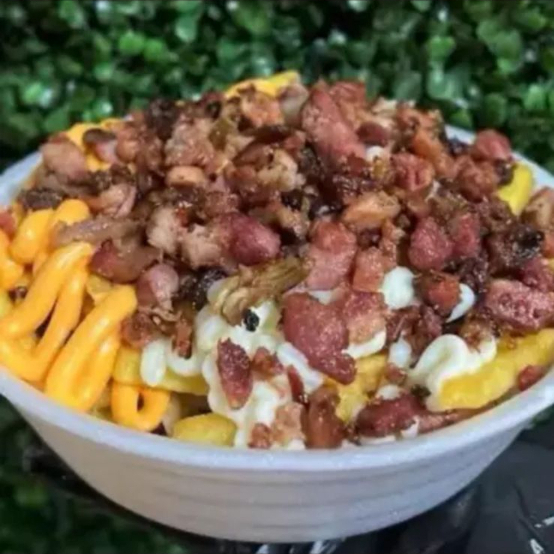 Salsicha, Molho, Tomate, Cebola, Milho e Batata Palha