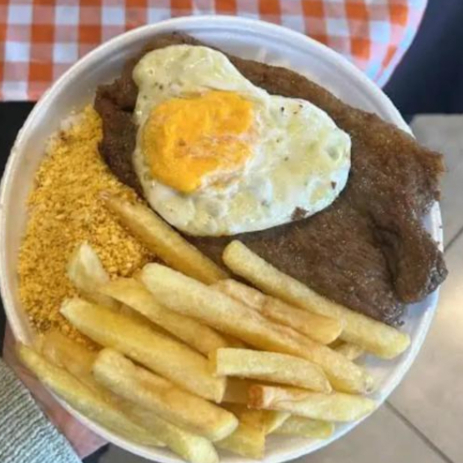 Arroz, Feijão, Bife a Cavalo, Batata Frita e Farofa