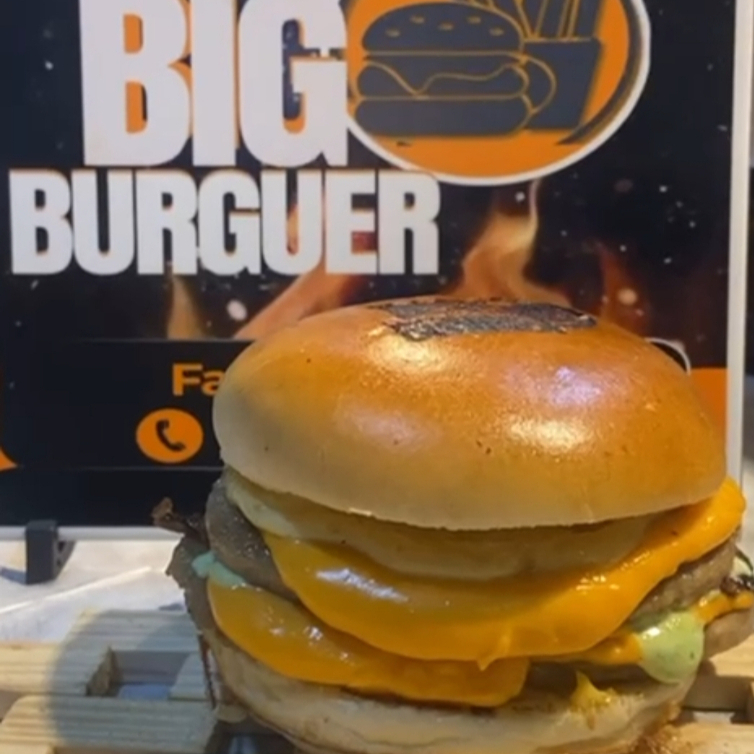 pão artesanal, 3 carnes bovina, 2 ovos, queijos, bacon, calabresa, salada, molho especial