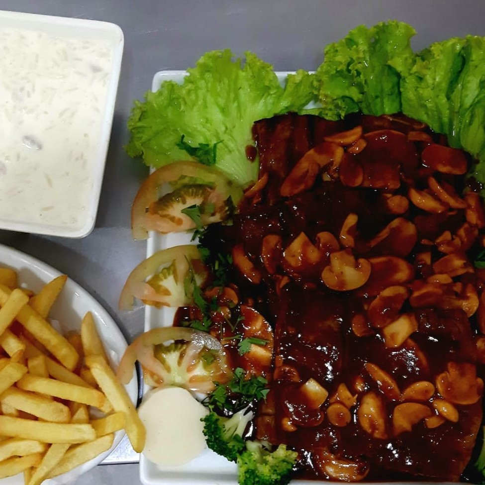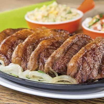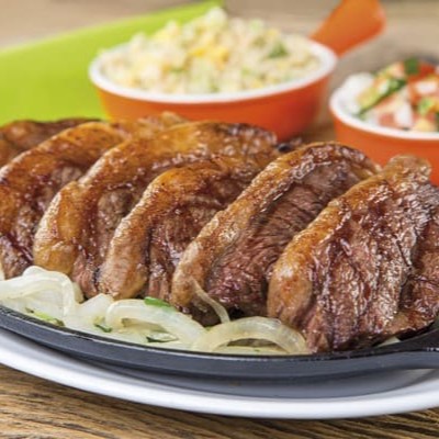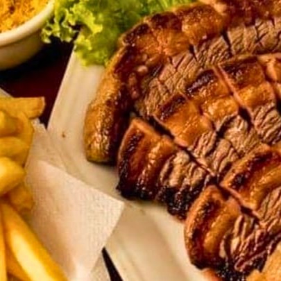 800g de bifes grelhados, bem servido. acompanha: arroz á piamontese e batata frita.