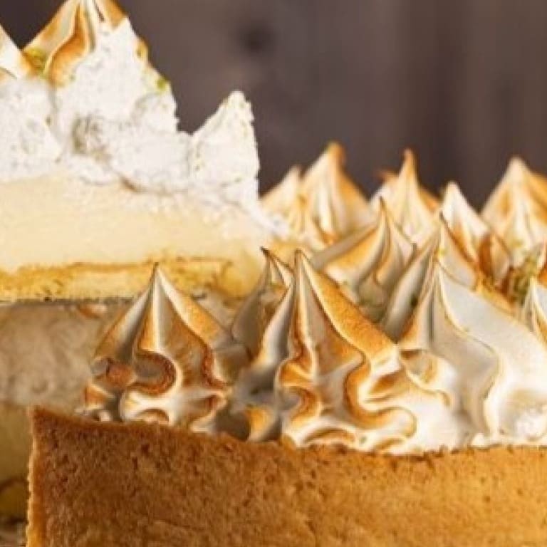 Finíssima massa crocante briseé recheada com equilibrado mousse de limão gourmet, coberta com merengue caseiro flambado e raspas de casca de limão.