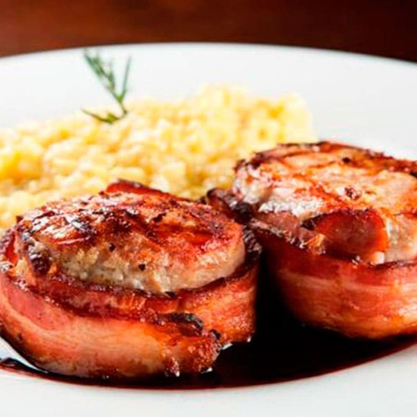 Executivo: Medalhão De Mignon Suíno Enrolado Com Bacon Com Molho Madeira.