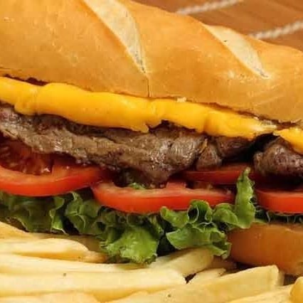 2 pães tamanho francês, file mignon,2 ovos, mussarela, alface, tomate e molho da casa.