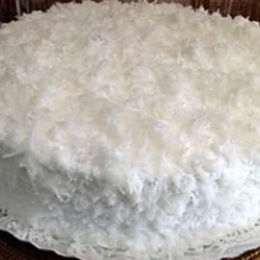 Pão-de-ló de baunilha, creme de leite condensado com coco, marshmallow e coco ralado.