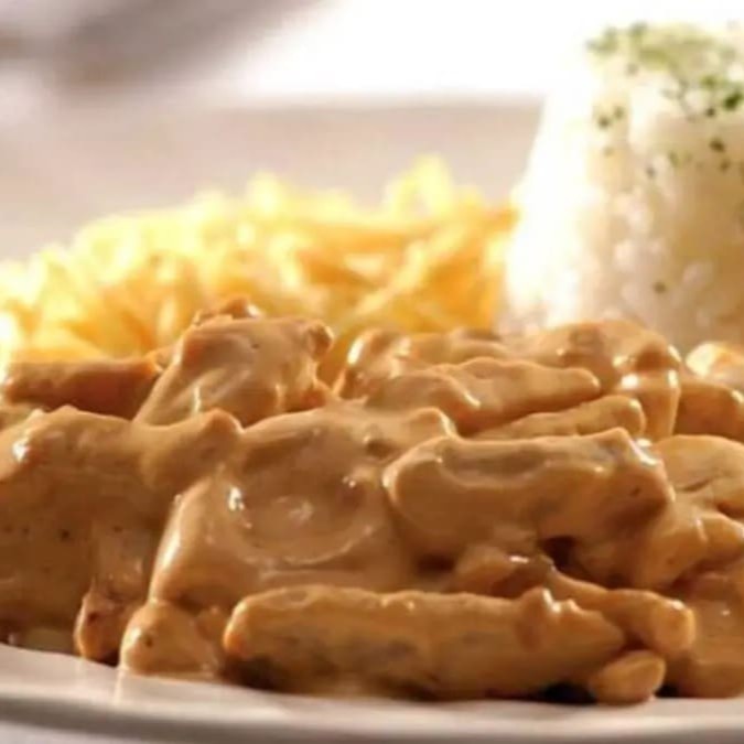 Strogonoff De File Mignon Bovino 400 Gramas: Arroz Branco E Batata Frita